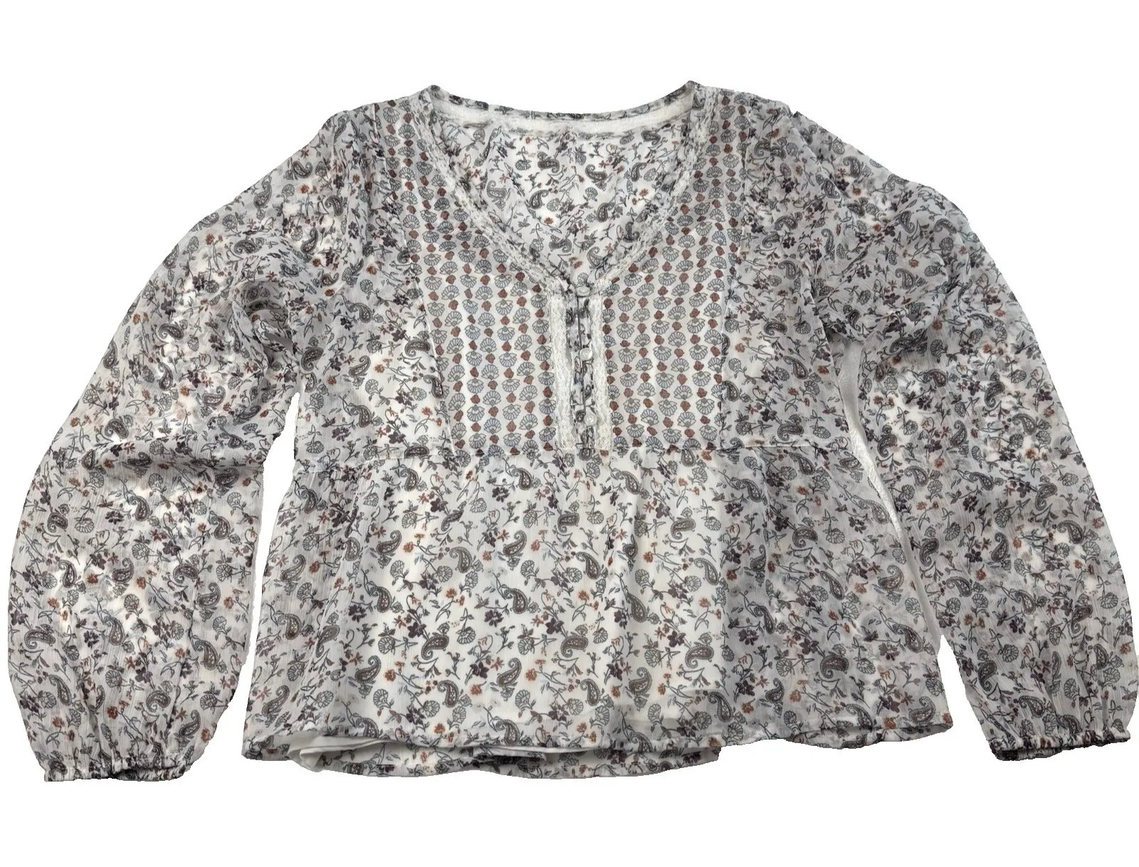 Hollister Boho Peasant Blouse Top Sheer Floral Long Sleeve Top Size Large Lace - $15 - From Wild