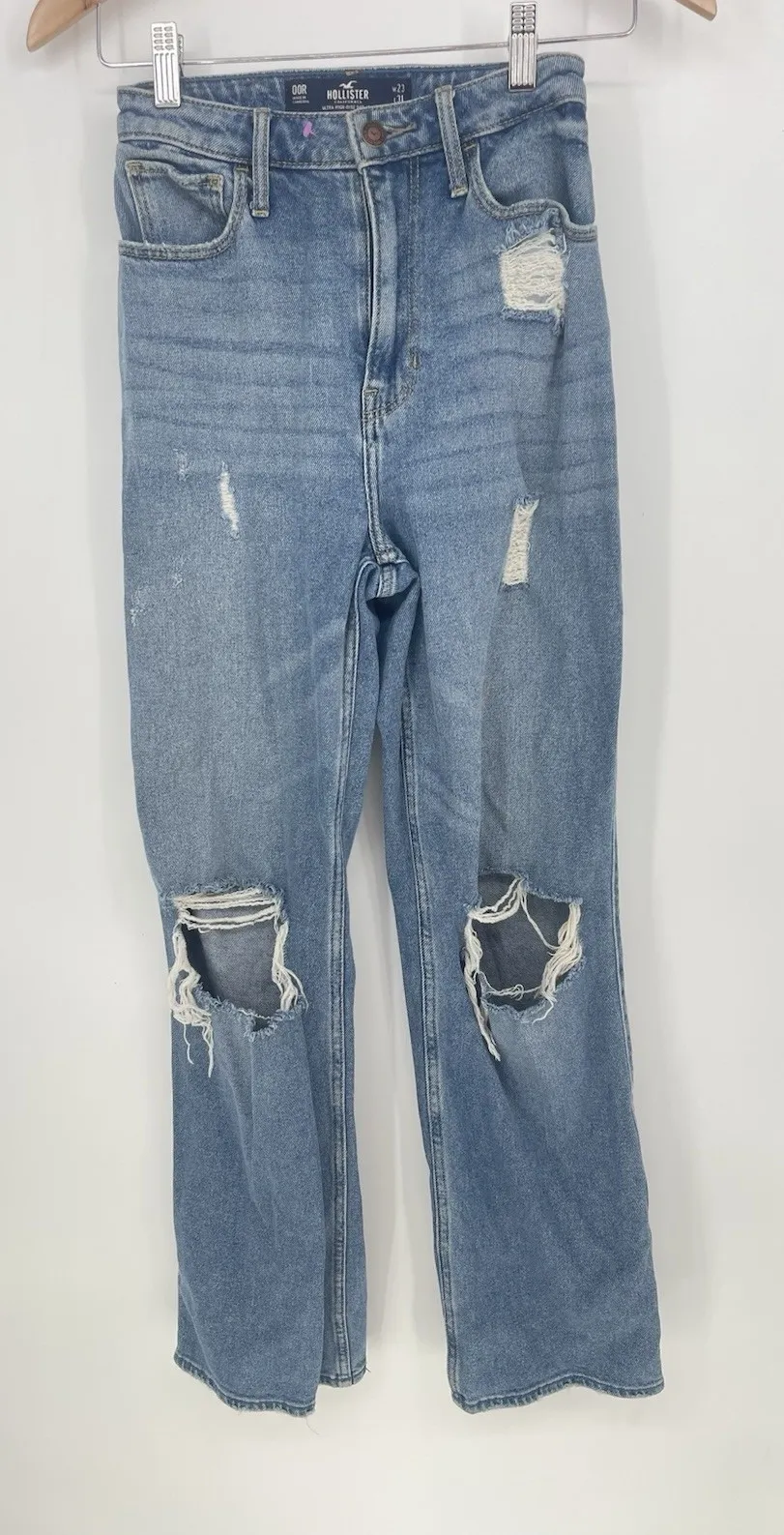 The HOLLISTER California Ultra high-rise Dad blue jeans in Size 00R with a 23x31 fit feature a solid... Show more