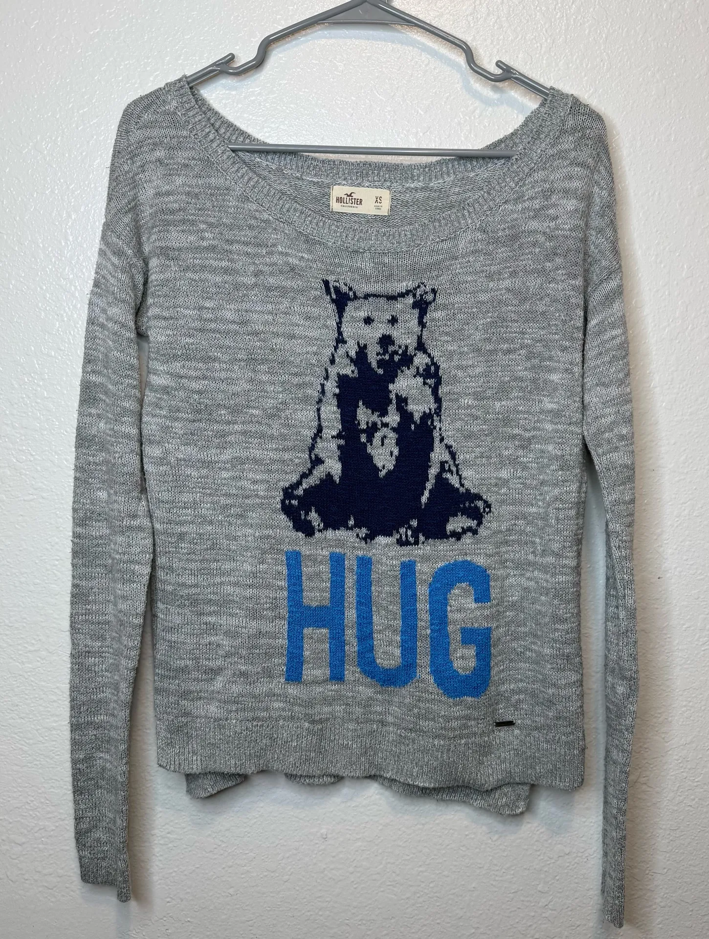 Hollister Crewneck Color: Gray Bear Hug Sweater Long Sleeve Size Extra Small Pit to Pit: 19” L... Show more