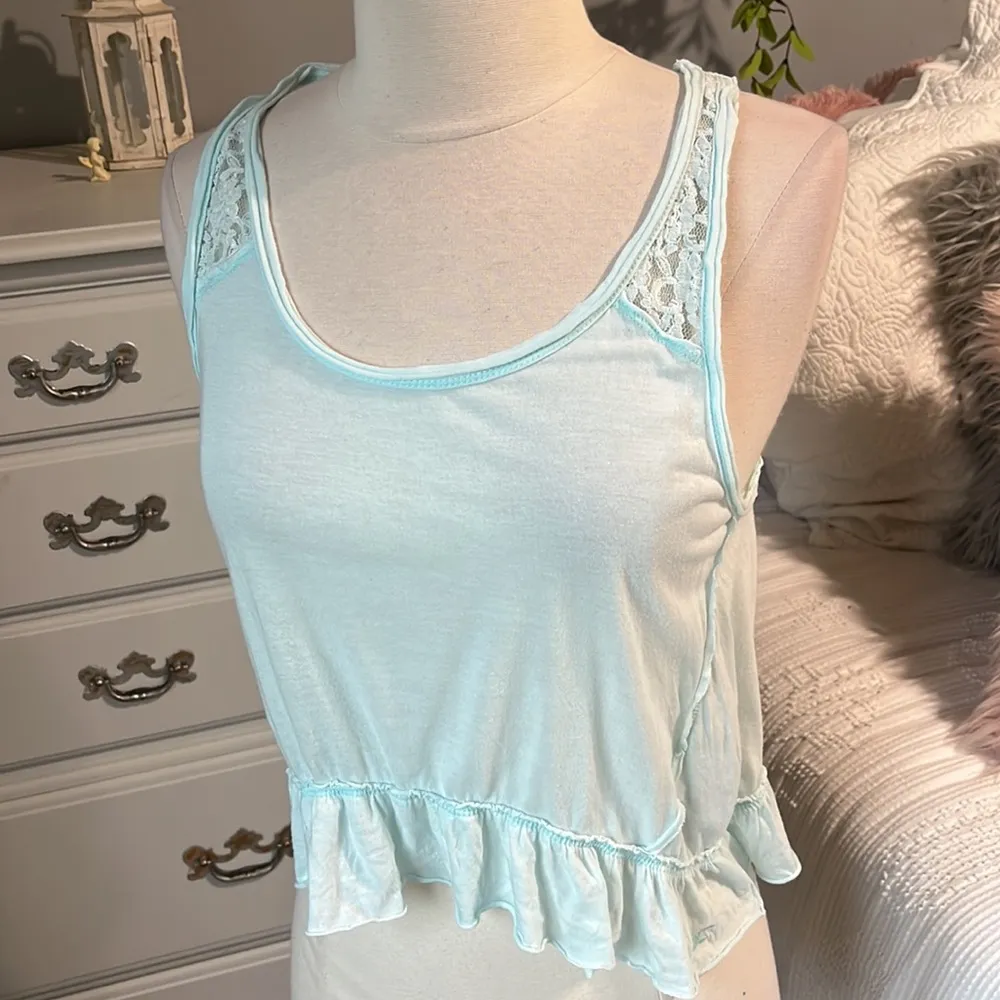 Hollister Crop Top Mint Green Wrap Back Tank Cotton Lace Womens Small Shirt Size undefined - $16 - From Debbie