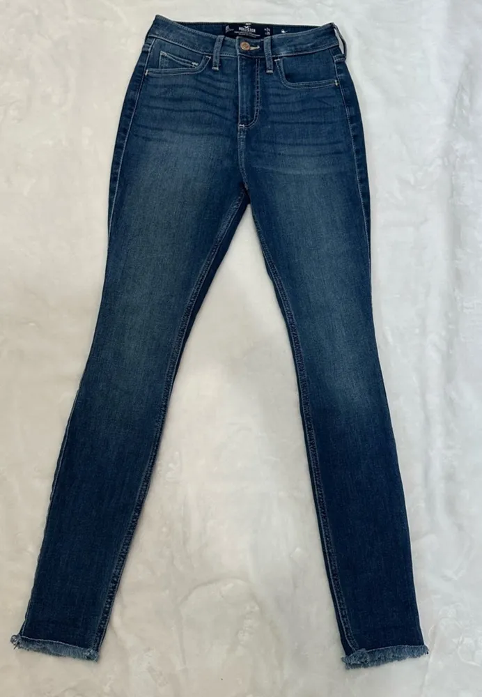 These Hollister skinny jeans feature a stylish gradient fade from deep indigo to a lighter blue, cra... Show more
