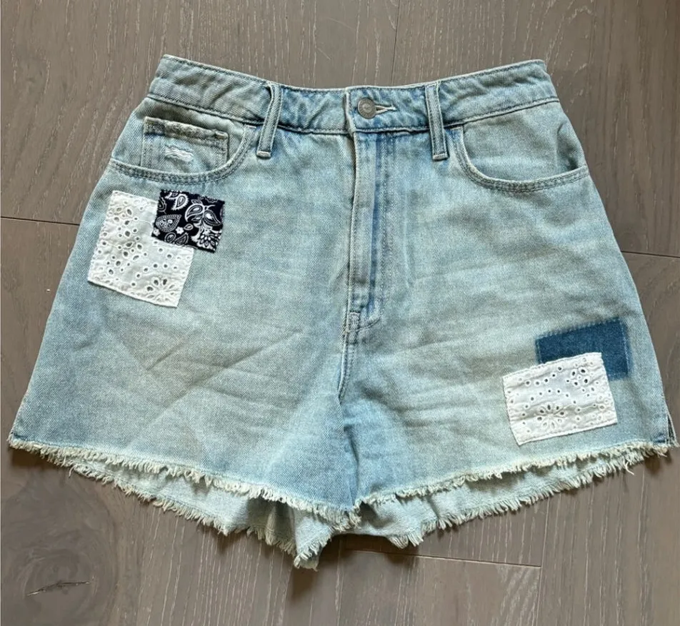 HOLLISTER Curvy Ultra High-Rise Patchwork Vintage Relaxed Mom Short size 1 W25 100% cotton See photo... Show more