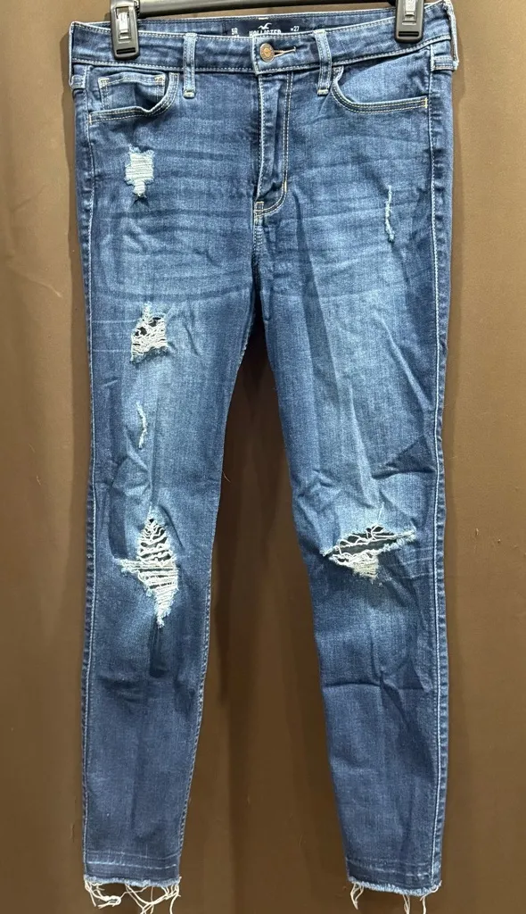 Hollister Dark Blue Ripped High Rise Cropped Super Skinny Jeans Size 5R 27W 28L - $18 - From Stefanie