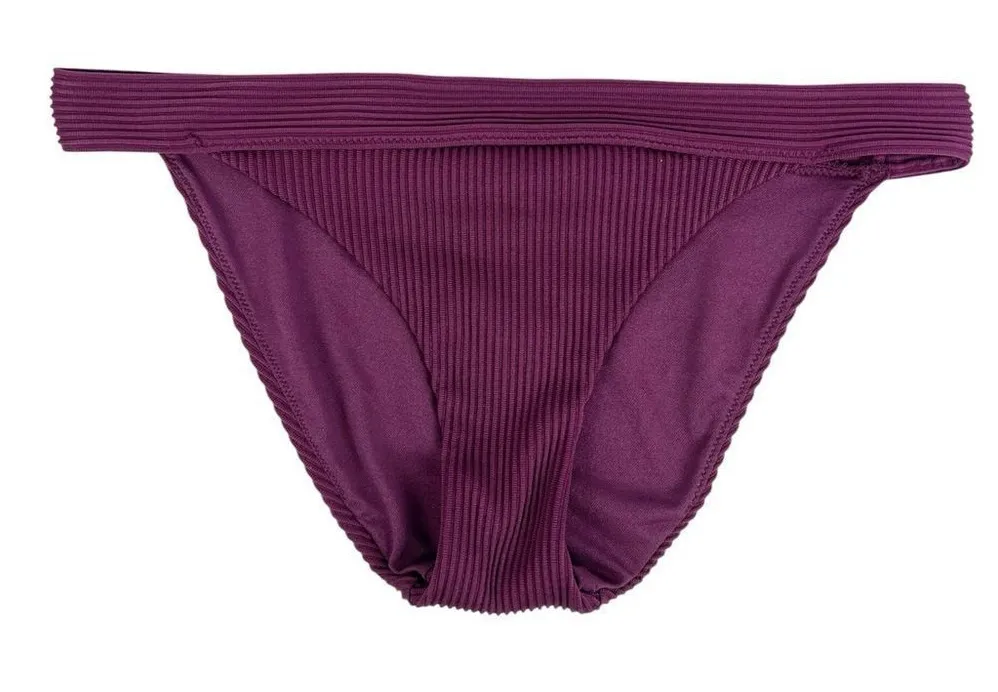 Super cute pre-owned Hollister Ribbed Hipster Swim Bikini Bottom Size Medium. Color is a dark plum p... Show more