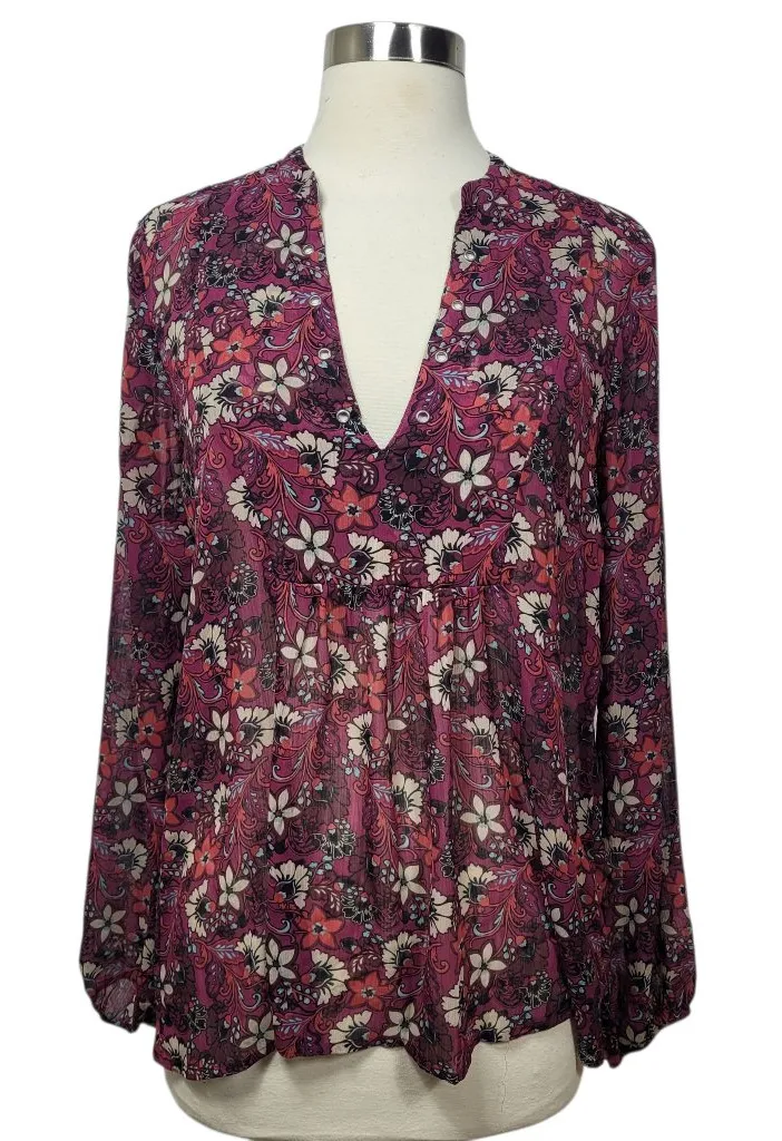 Add a touch of boho charm to your wardrobe with this Hollister Floral Chiffon Blouse. Featuring a vi... Show more