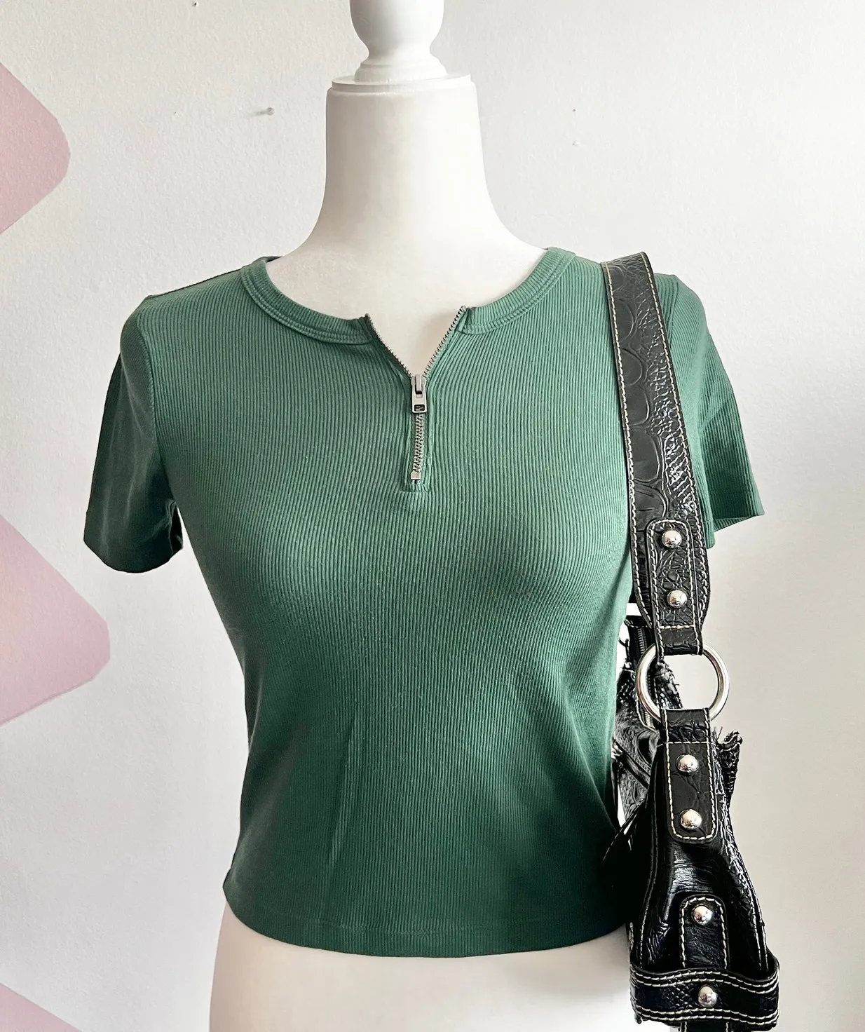 Hollister Henley Crop Top,‎ Y2K Coquette Retro Indie Sleaze Bella Swan Small Green - $12 - From Kenia