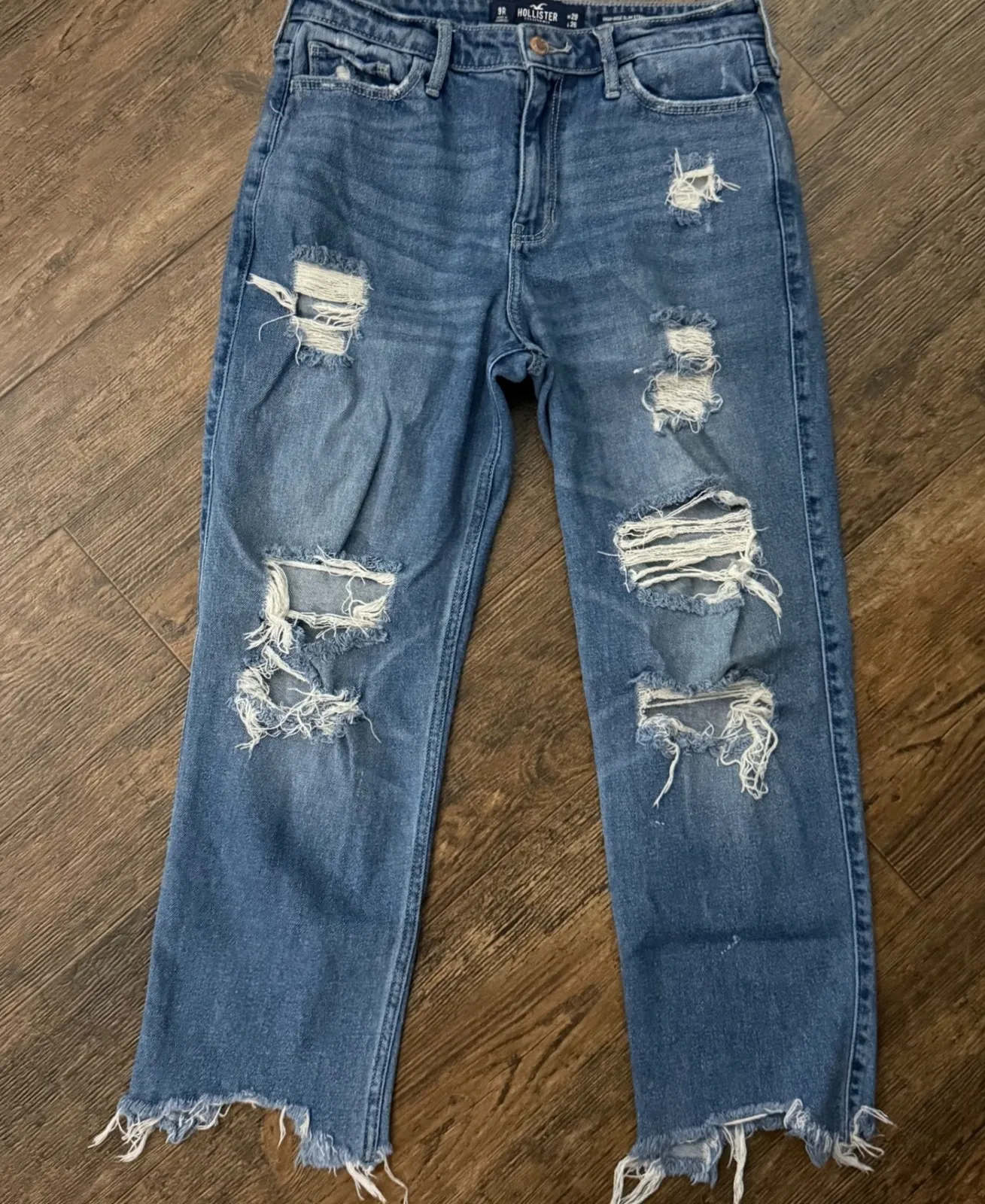 Keywords: Hollister Jeans, Womens Jeans, High Rise Jeans, Slim Straight Jeans, Distressed Jeans, Ripped Jeans, Frayed Hem Jeans, Blue Jeans, Designer Jeans, Casual Jeans, Everyday Jeans, Fashionable Jeans, Comfortable Jeans, Trendy Jeans, Denim