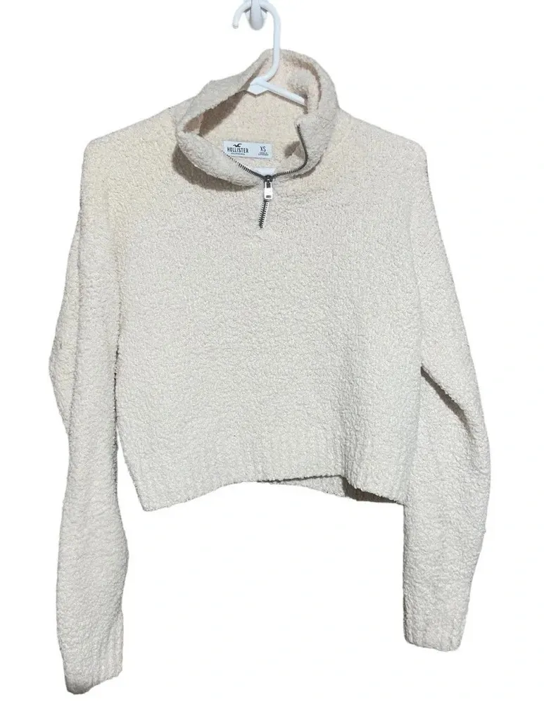 In good condition. This cozy Hollister quarter zip sweater is perfect for chilly days. The ivory col... Show more