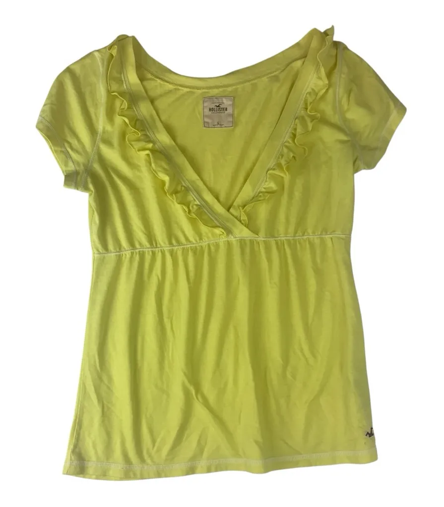 Hollister juniors large yellow lemon blouse with ruffle accents. V-neck design. Perfect for casual w... Show more