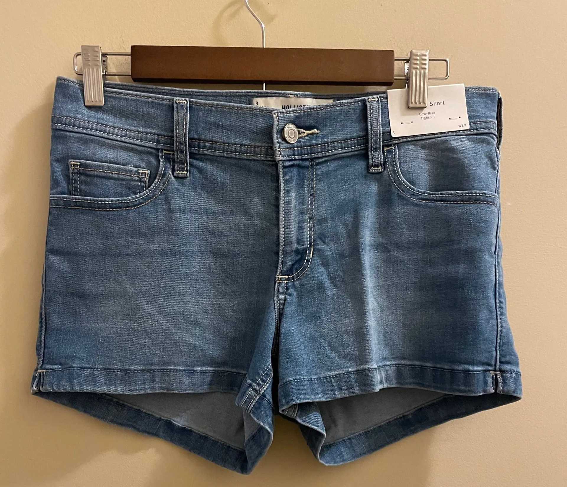 Hollister Low Rise Tight Fit Shortie Shorts Medium Wash Women’s 8/29 NEW NWT Hollister Low-Rise Me... Show more