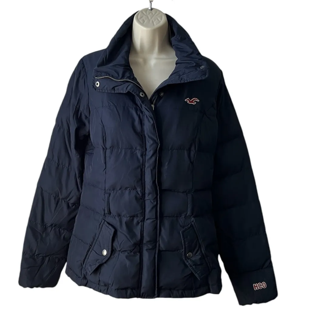 This Hollister puffer jacket is in great preowned condition. Some of the stuffing is bunched up arou... Show more