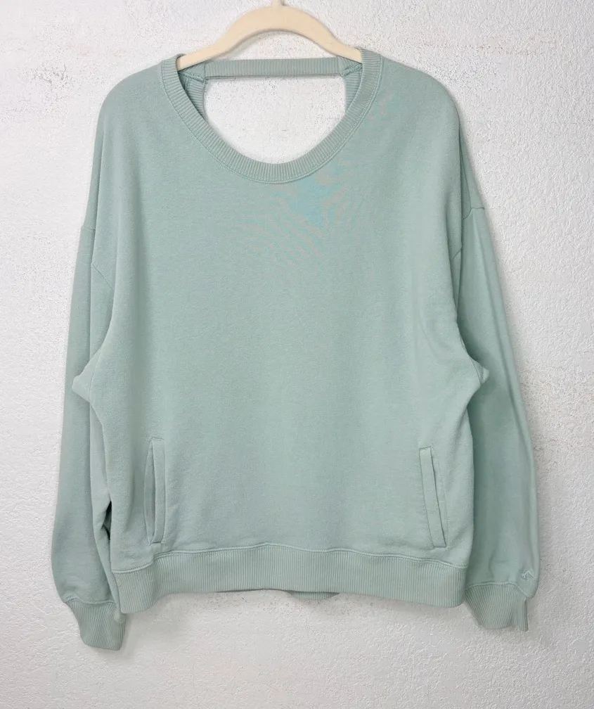 90s Hollister Oversized Fleece Sweatshirt Women’s S Sage Green Cut-Out Back Cozy 90s Y2K Condition:... Show more