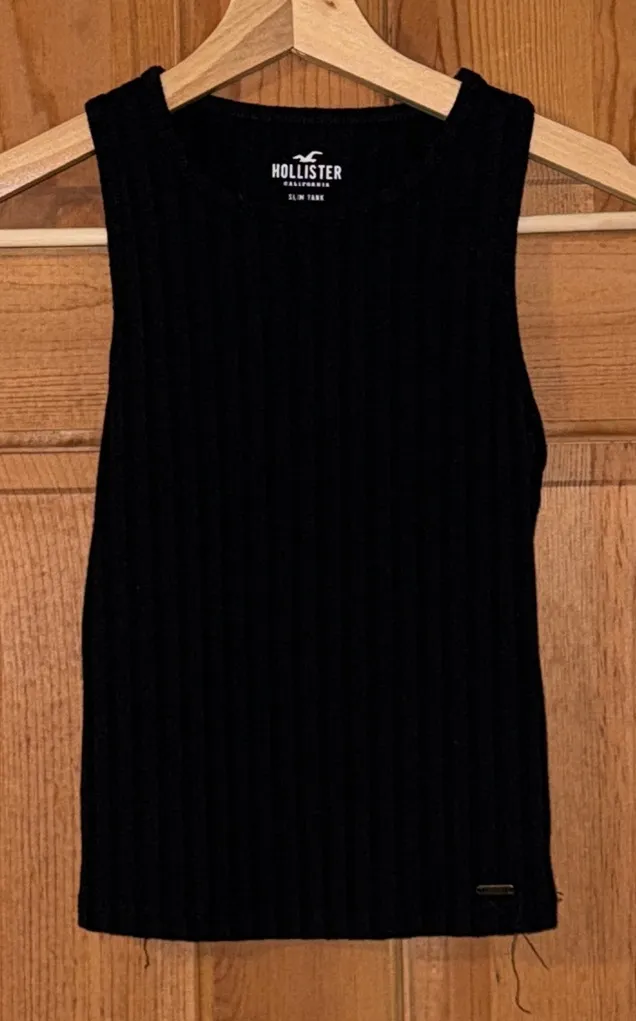 Sleek black tank top by Hollister. Ideal for casual wear. Soft ribbed texture. Hollister Size Extra... Show more