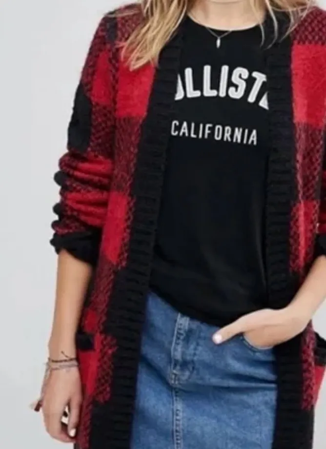 Hollister Women's Buffalo Plaid Cardigan Sweater Size Small Red Black Cover Stay cozy and stylish wi... Show more