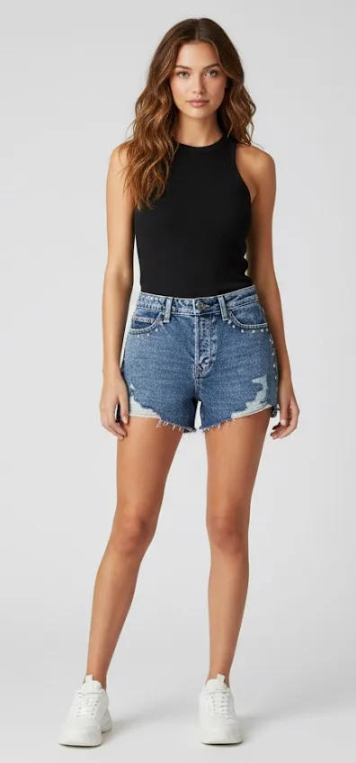 HOLLISTER Studded Acid Wash Button Fly Distressed High-Rise Mom Short 3” Size 25 Size 25 | 1 US VGUC... Show more