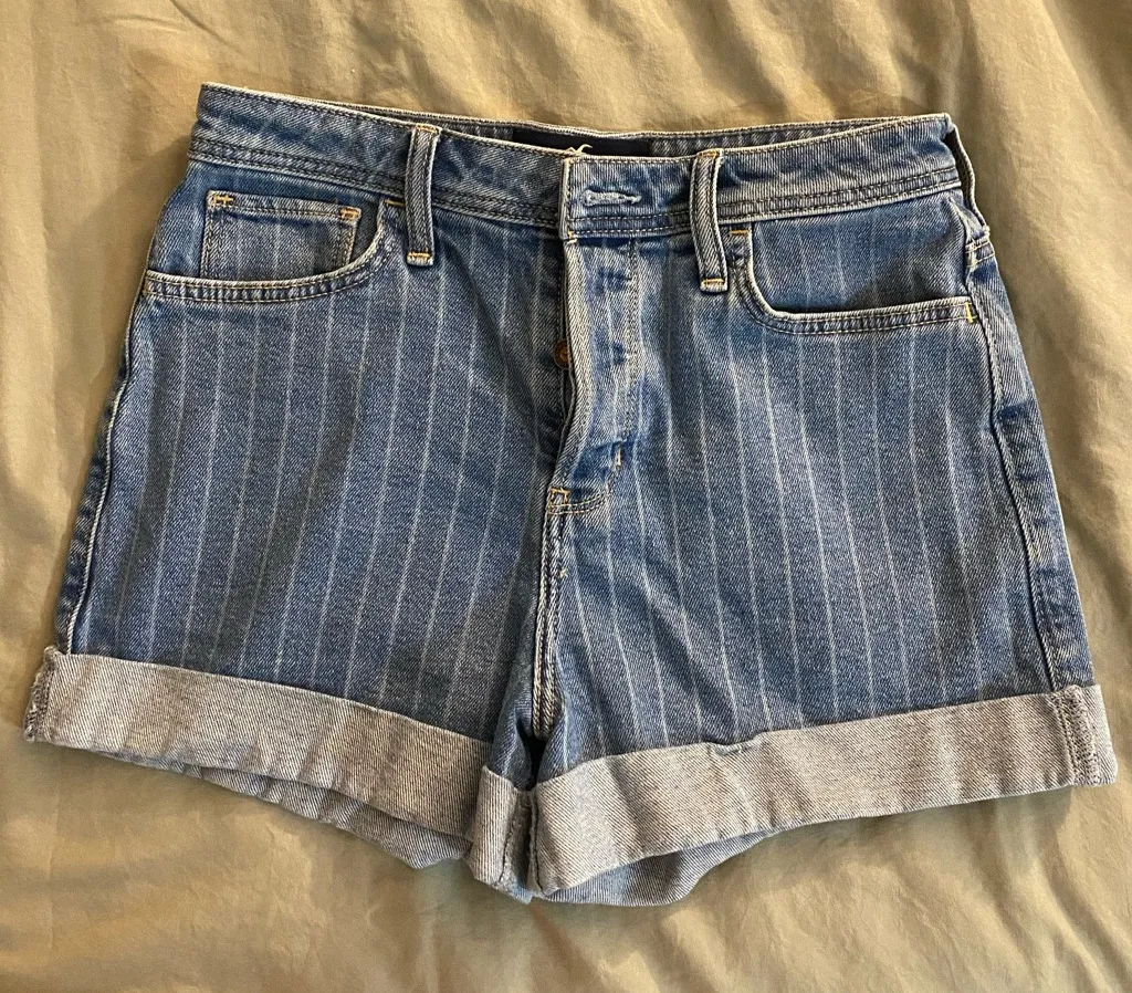 These mom styled jean shorts are lightly worn but in pristine condition. The size is 28 or 7 in wome... Show more