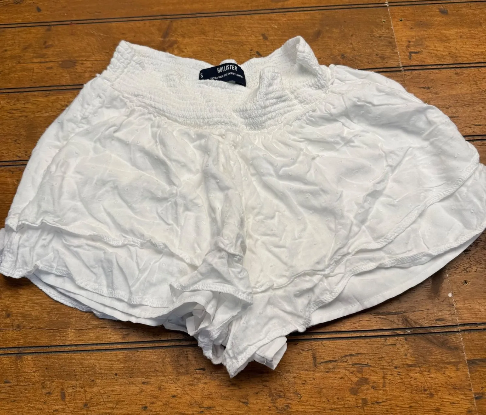 Hollister ultra high rise skirty shorts in white featuring a textured Swiss dot pattern. These short... Show more