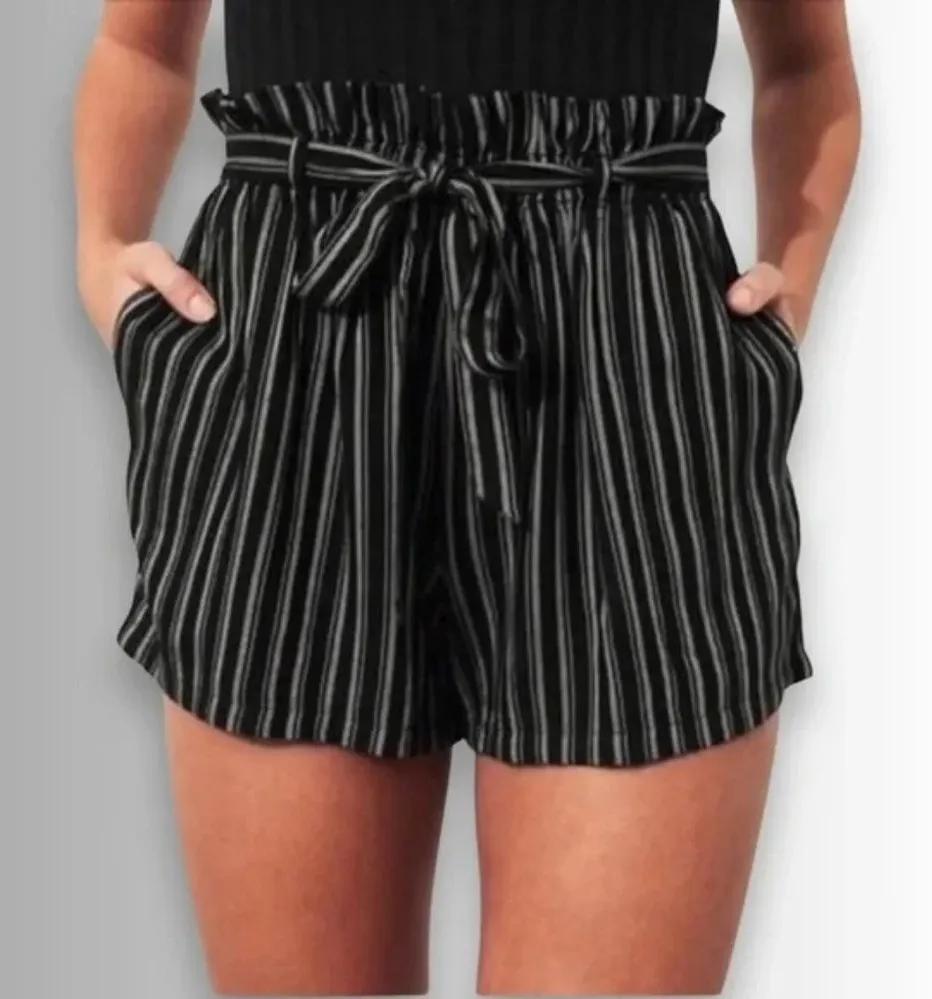 Ultra High Rise Striped Paperbag Shorts by Hollister Women's size XS Color: Black with grey strip... Show more