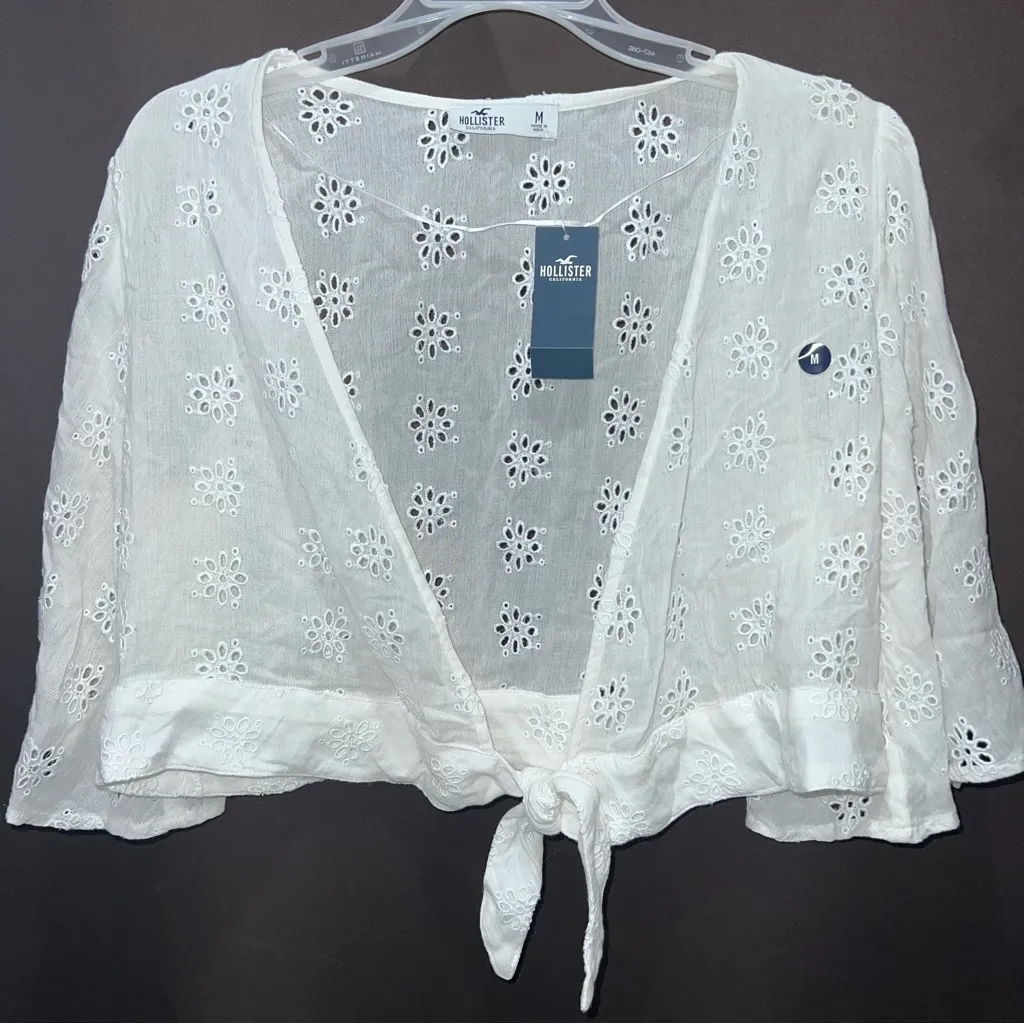 Elegant cream cardigan with lace accents. Ideal for stylish layering. Brand new. Smoke free home.... Show more
