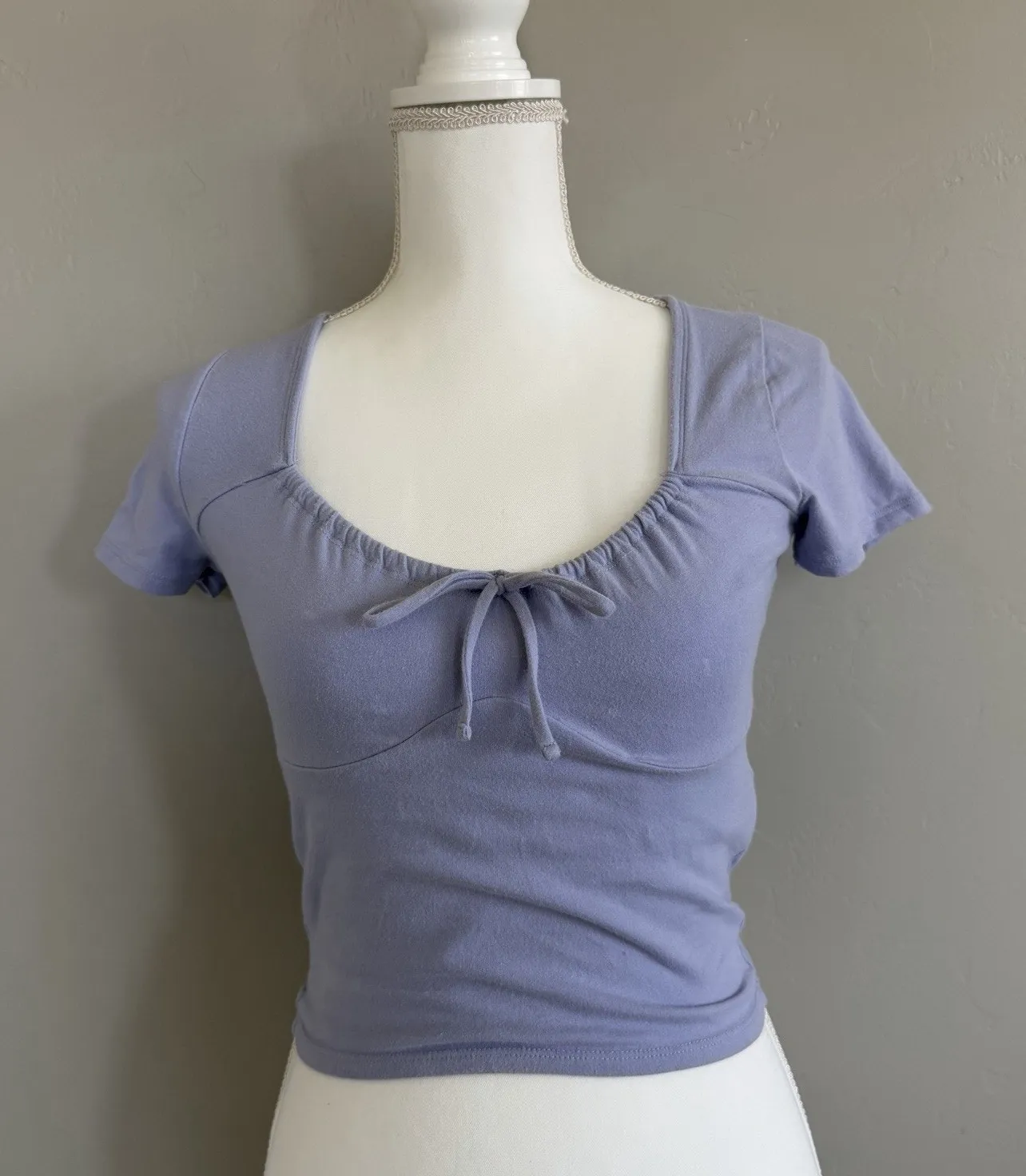 Super cute crop top from Hollister MUST-HAVE COLLECTION. Size small. Periwinkle, short sleeve. Cinc... Show more
