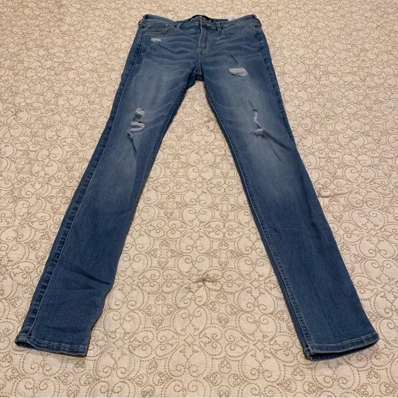 . Size is 7R and W28 and L30 and a darker blue with lighter fading near top and lots of distressing.... Show more
