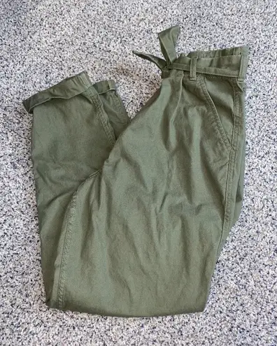 Olive green paper bag pants. New condition, no flaws. Tie waist that is removable. Zipper at the top... Show more