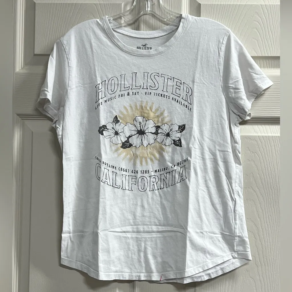 Hollister Womens White Malibu, California Flower T-shirt - Size Small - GUC - $8 - From Renee