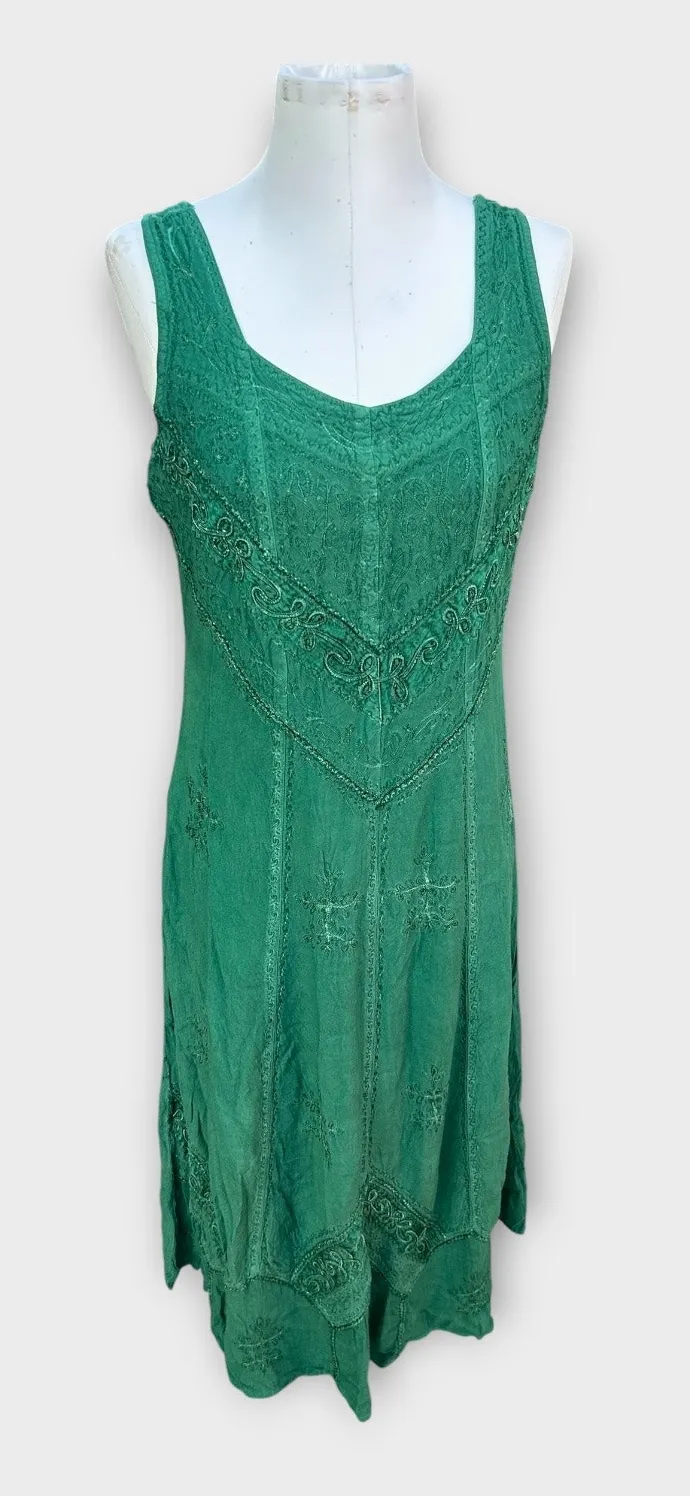 Women's Holy Clothing size large (L) emerald green embroidered sleeveless mid length dress. This dre... Show more
