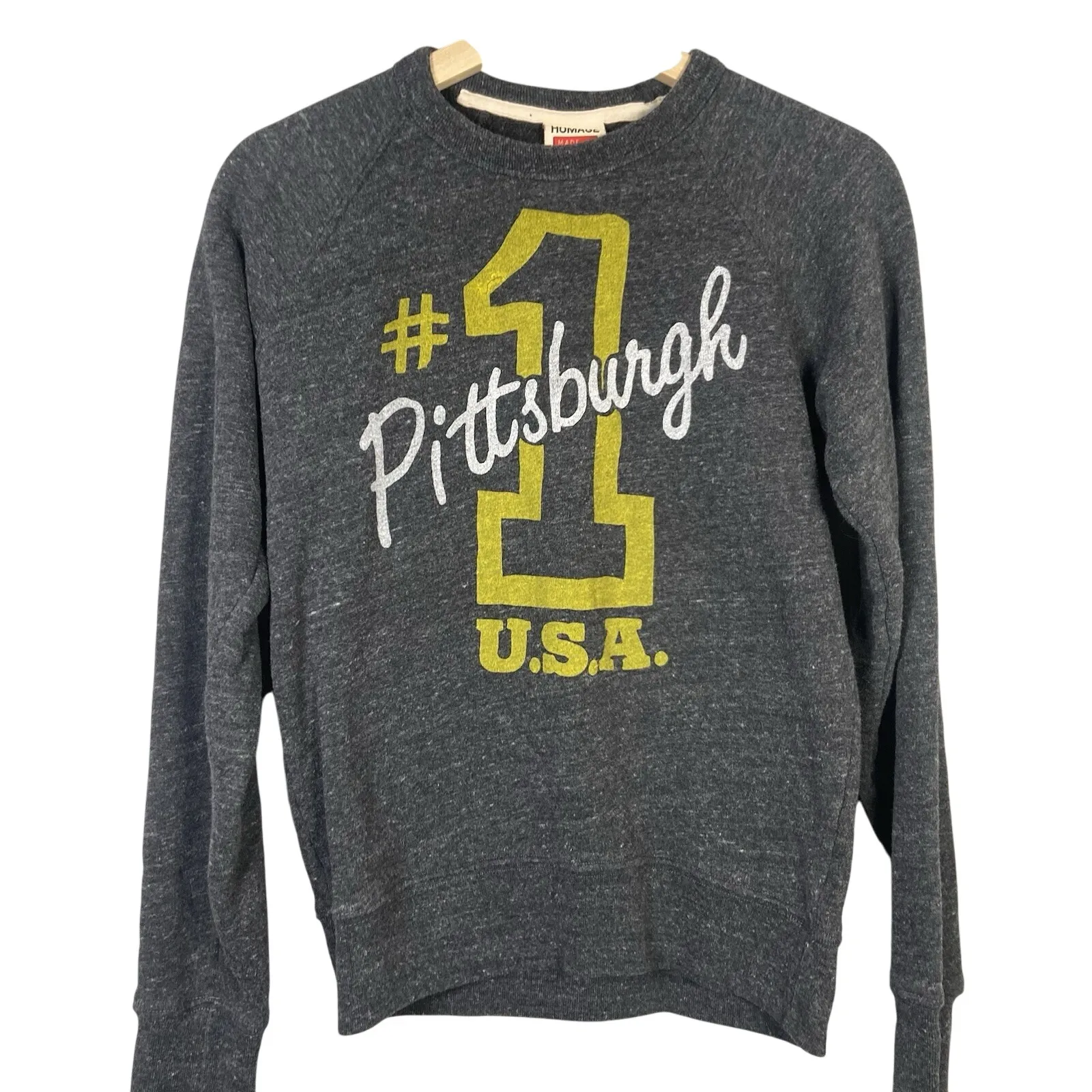 This Homage Pittsburgh #1 Super Soft Gray Gold Crewneck Sweatshirt is a must-have for any fan of the team. The sweatshirt features a pullover closure and is made of super soft material that will keep you comfortable all day long. It is available in size small heather and is perfect for travel, activewear, and casual occasions. The sweatshirt is made for unisex adults and is a great addition to any wardrobe. The 90s and sports theme make it a stylish choice for any fan. It is suitable for winter, fall, and spring seasons. Get your hands on this stylish sweatshirt today! #374