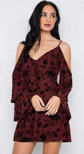You'll love this whimsical velvet burnout cold-shoulder mini dress! It features tiered bell sleeves... Show more