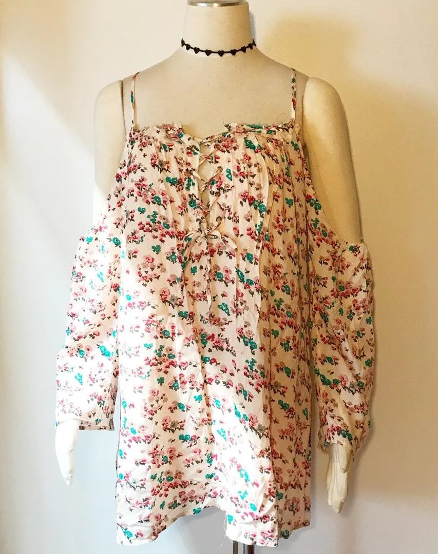Beautiful floral cold Shoulder Long Sleeves Boho Shift dress with Laced Tie Strap Neckline. ✅Avail... Show more