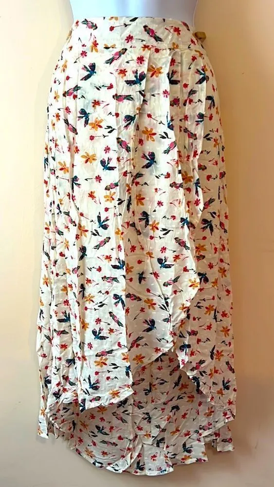 An adorable ivory colored skirt from Honey Punch. Features a floral print with sparrows. Side zipper... Show more