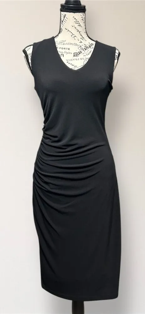 Honeylove InnerPower Sleeveless Midi Dress in classic black. Features figure-enhancing shaping panels and a hidden tummy panel for a smooth, confident fit. Sculpted Confidence, Sleek Minimalist, Sexy Chic, Modern Elegance, Cocktail Ready, Night Out Glam, Power Dressing Occasion: Work, Date Night, Cocktail Event, Evening Out, Special Occasion Accents: Hidden Tummy Panel, V-Neckline, Sleek Back Seaming, Lined Interior Features: Sleek, sculpting silhouette for a flattering figure Lined with smoothing shapewear panels Hidden zipper closure Soft, stretchy, supportive material Midi length for a classy finish Measurements (approx.): Underarm to Underarm: 19" Shoulder to Hem: 42" Waist: 17" Material: Body: 95% Polyester, 5% Spandex, Lining: 64% Polyamide, 36% Spandex Condition: New with tags Stored in climate-controlled, smoke-free, pet-free space.