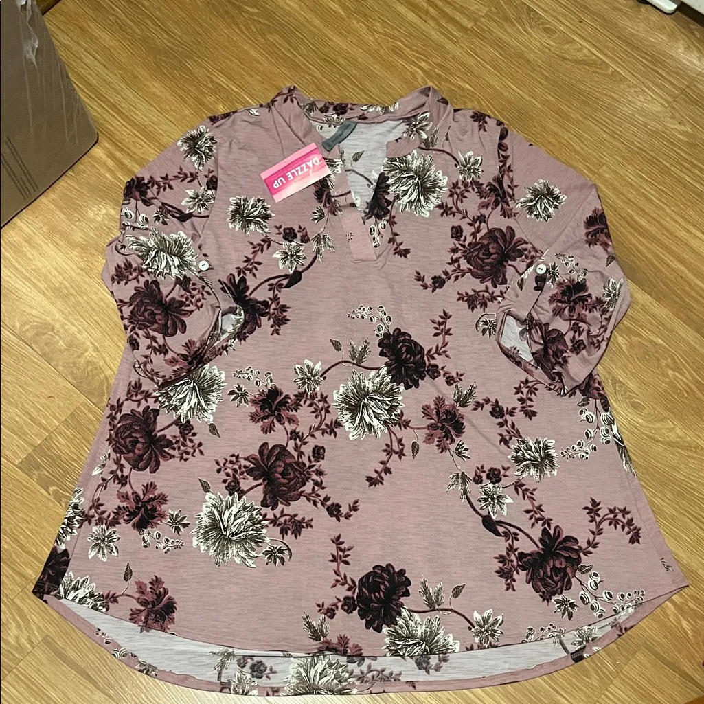 Honeyme Mauve and Black Floral Tunic v neck soft and stretchy XXL Pink - $25 New With Tags - From Susan