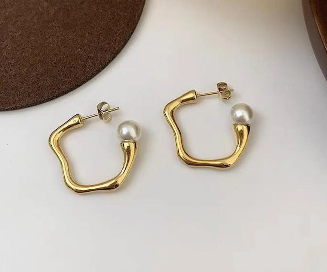 hoop earrings with pearl gold open hoop chunky hoop push back open hoop gold hoop with pearl - $15 New With Tags - From Boutiquejbylee