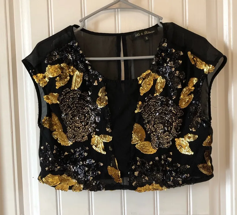 dance wear/top. Gold and black Sequined Great condition leotard top Size small - $6 - From Amy