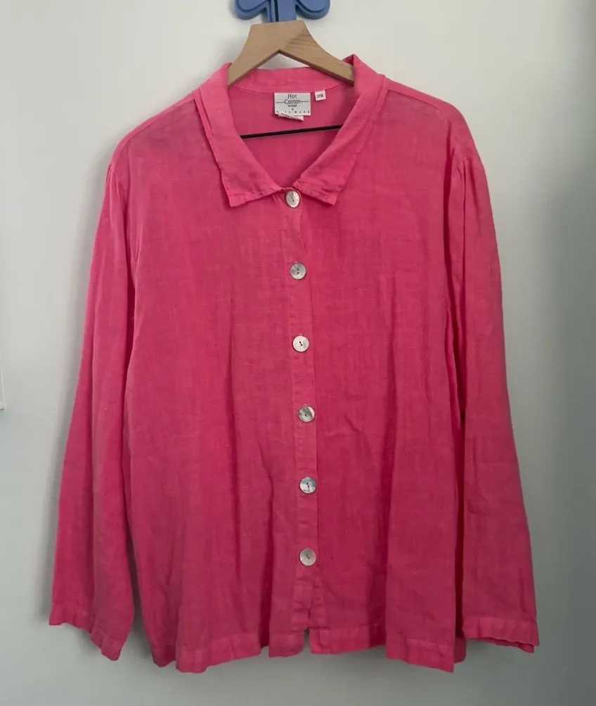 Hot Cotton 2X Linen Hot Pink Long Sleeve Button Up Shirt Resort Vacation Relaxed - $19 - From Most