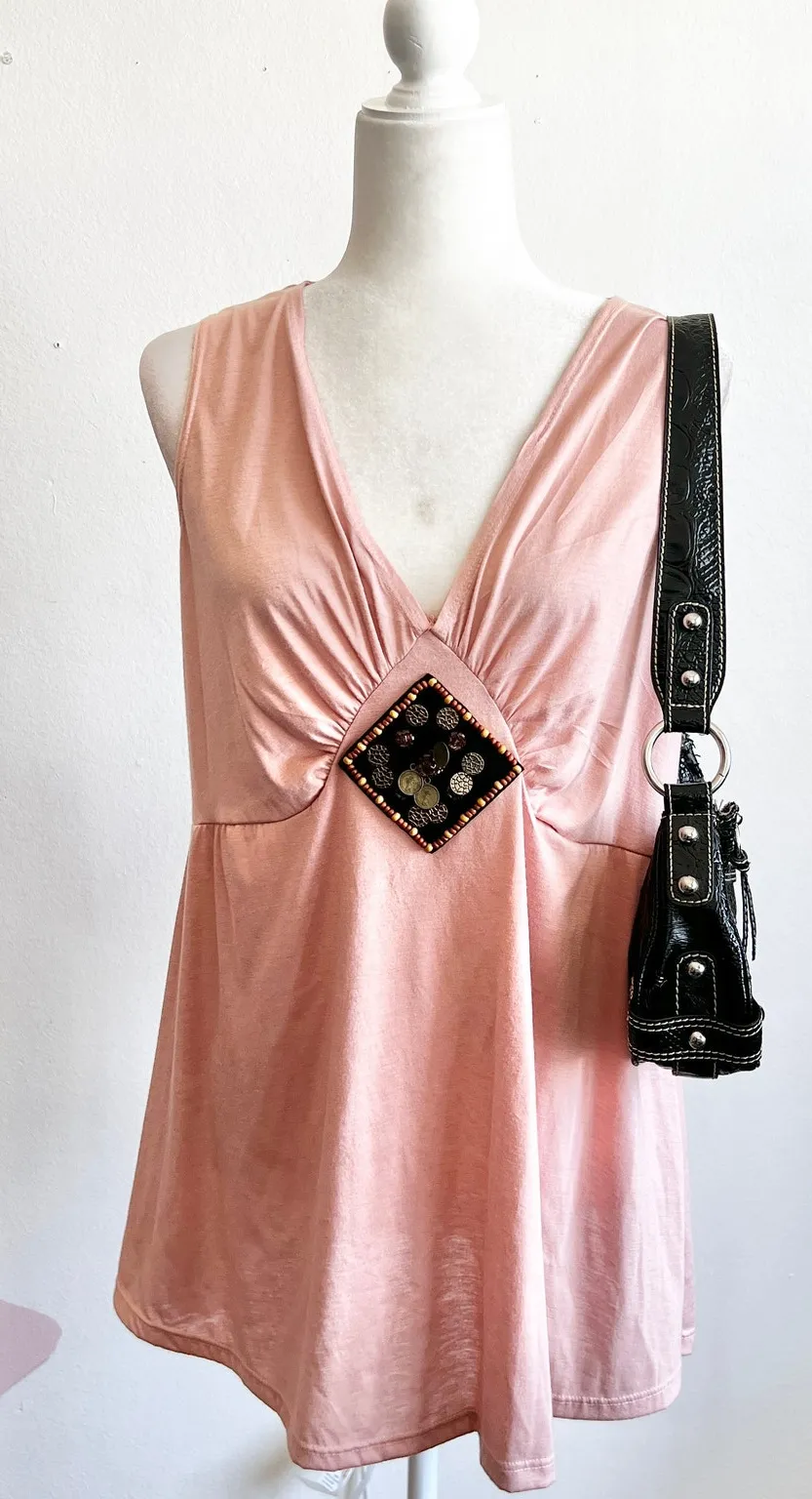 Vintage Pink Babydoll Top,‎ Y2K 2000s Soft Girl Coquette 1X - $14 - From Kenia