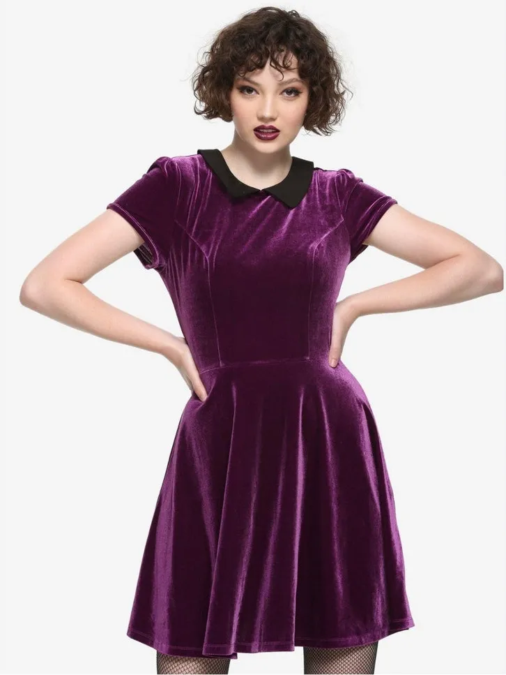 Hot Topic Velvet Dress Large Purple Velvet Peter Pan Collar Halloween Cosplay Wednesday Core. The d... Show more