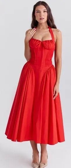 Our 'Adabella' midi sundress is so pretty and elegant in a stunning Italian tomato hue. Cut from str... Show more