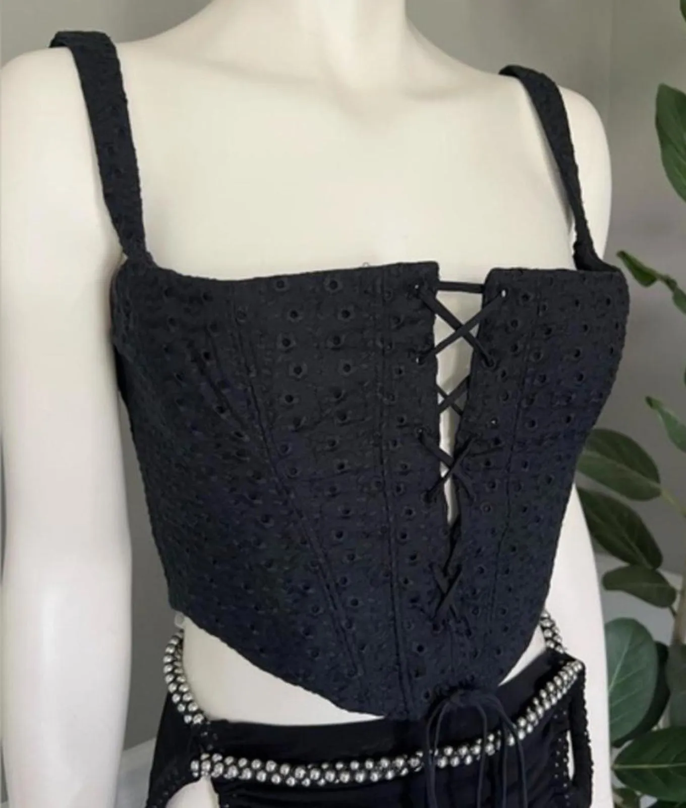 House of CB Cropped Eyelet Bustier Corset Top Black Lace Up Size XS - $75 - From Silviya