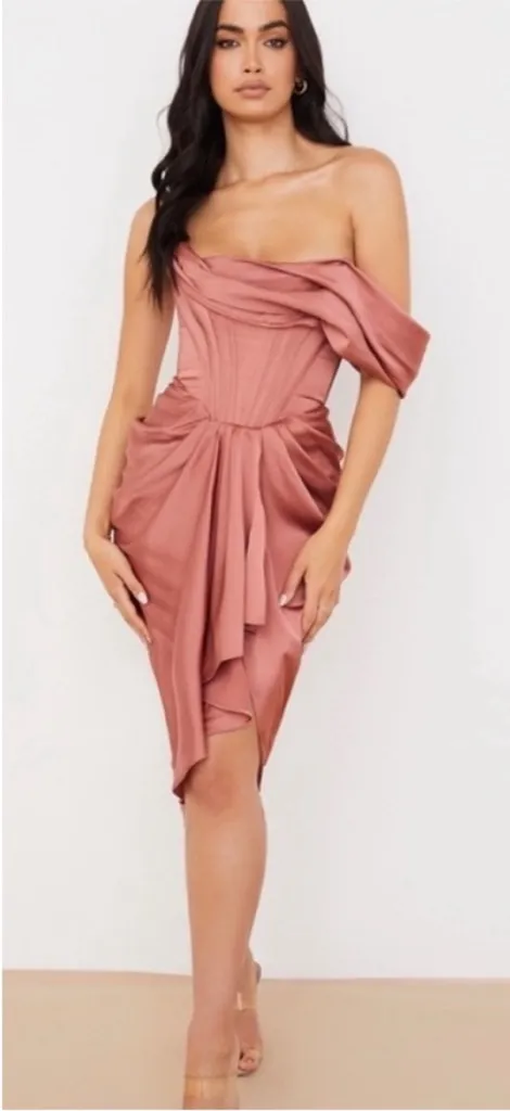 Gently used - tiny snags on inside Warm pink Corset underwire boning Strapless with one off the sho... Show more