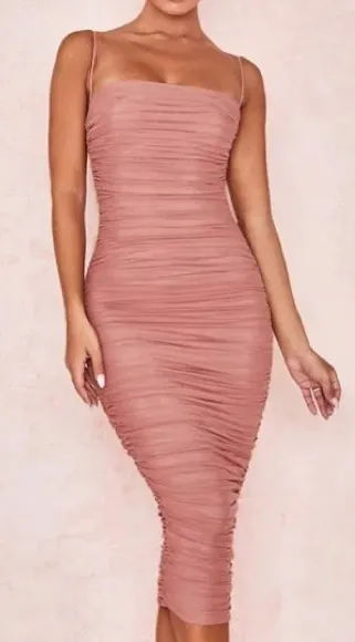 House Of CB Sirene Gathered Organza Mesh Antique Rose Dress Size XS 85% Polyester 15% Elastic Ligh... Show more
