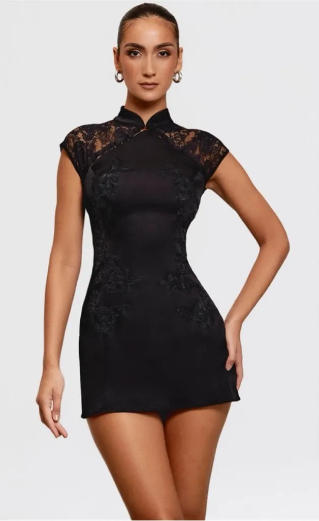 HOUSE OF CB 'Thea' Black Embroidered‎ Mini Dress NWOT XL - $178 New With Tags - From Brenda