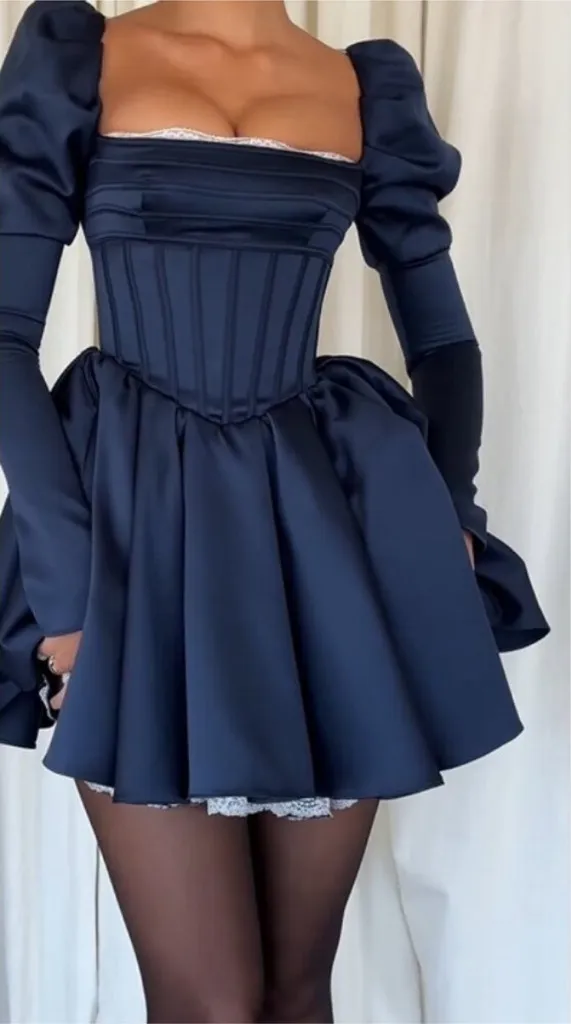 HOUSE OF CB 'Venetia' Midnight Satin Puff Sleeve Mini Dress NWOT Size XS‎ Blue - $185 New With Tags - From Brenda