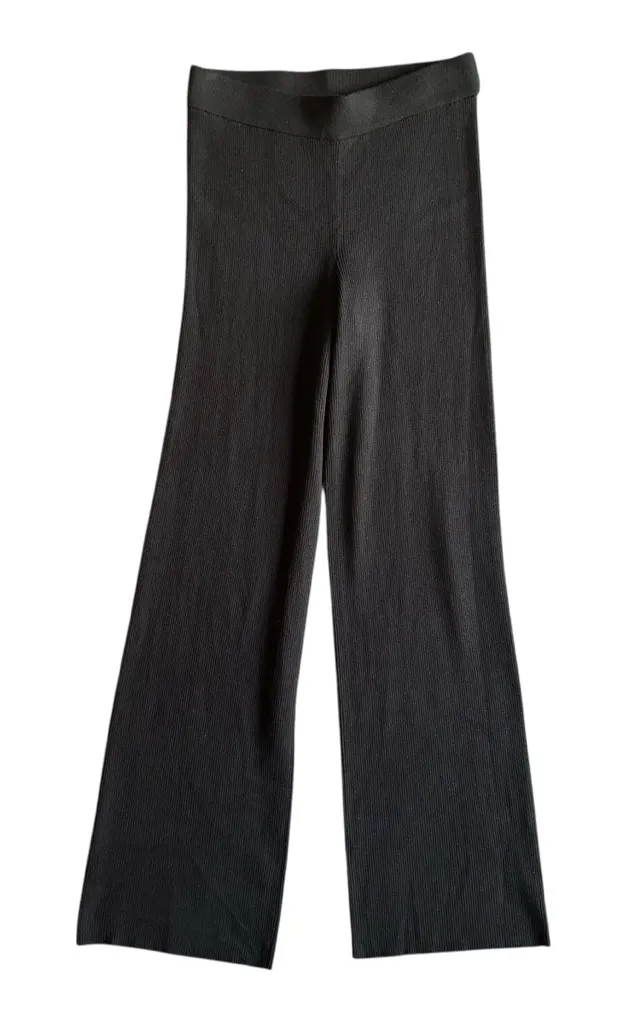 Sleek and elevated House of Harlow 1960 black ribbed pants featuring a wide straight-leg silhouette and a high-rise elastic waistband for a flattering, comfortable fit. Soft ribbed knit fabric with a clean, minimalist look that drapes beautifully through the leg. Easy pull-on style—perfect for dressing up or down. A versatile wardrobe staple—ideal for everyday wear, travel, brunch, or elevated casual looks. House of Harlow 1960 Small Black High-rise elastic waistband Ribbed knit fabric Wide straight-leg fit Pull-on style Great preowned condition (no visible flaws)