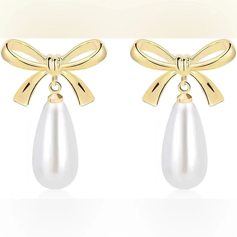 HOUSE OF HARLOW 1960 BOW PEARL DROP EARRINGS Gold - $38 - From Natural