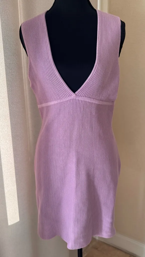Stunning and sophisticated, this House of Harlow 1960 dress features a flattering plunge V-neckline, ribbed bandage-style fabric, and a beautifully structured silhouette. The soft lavender color adds an elegant, feminine touch—perfect for events, nights out, or special occasions. Details: • New With Tags • Size: Medium • Color: Lavender • Plunge V-neckline • Ribbed bandage knit • Figure-hugging, stretchy fit • High-quality construction Condition: Brand new, unworn, with original tags attached.