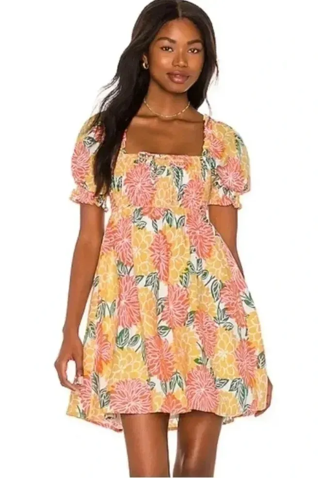 Brand new with tags. Gorgeous orange, yellow gold, green and white floral print. Pullover styling. Smocked around bodice. Smocked “puffy” sleeves. Lined. Linen. Polyester lined. Size XL. Pit to pit: 18” will stretch as it’s smocked around the back. Shoulder to hem: 36” Smoke free home.