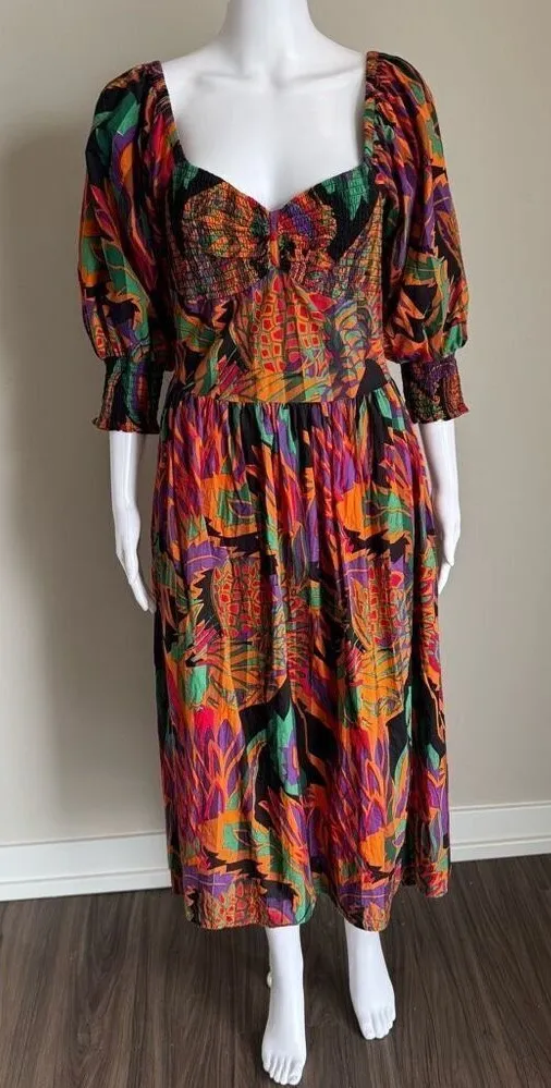 House Of Harlow 1960 Smocked Puff Sleeve Dress Size M White Lotus Purple Size M - $34 - From Jade